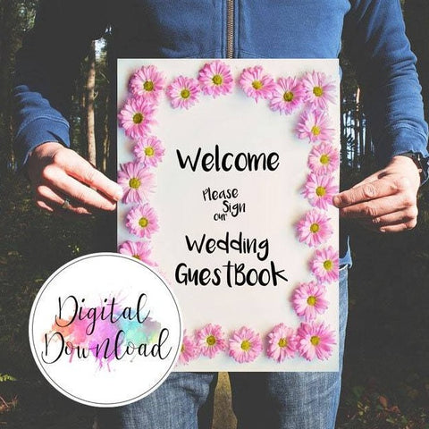 Sofortiger Download Rosa Gänseblümchen-Effekt Hochzeits-Gästebuchschild