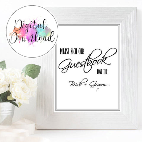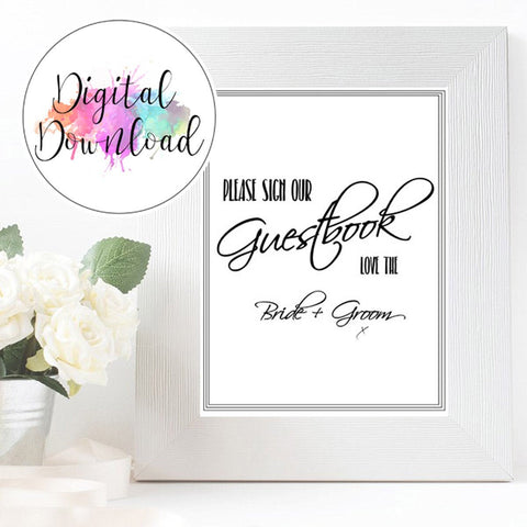 Sofortiger Download des schwarz-weißen Gästebuchschilds