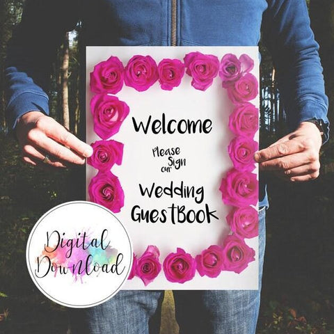 Sofortiger Download des Hochzeits-Gästebuchschilds mit rosa Roseneffekt