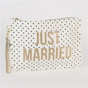 Make-up-/Kosmetiktasche „Just Married“ mit glitzerndem Schriftzug und Reißverschluss.