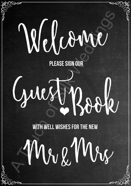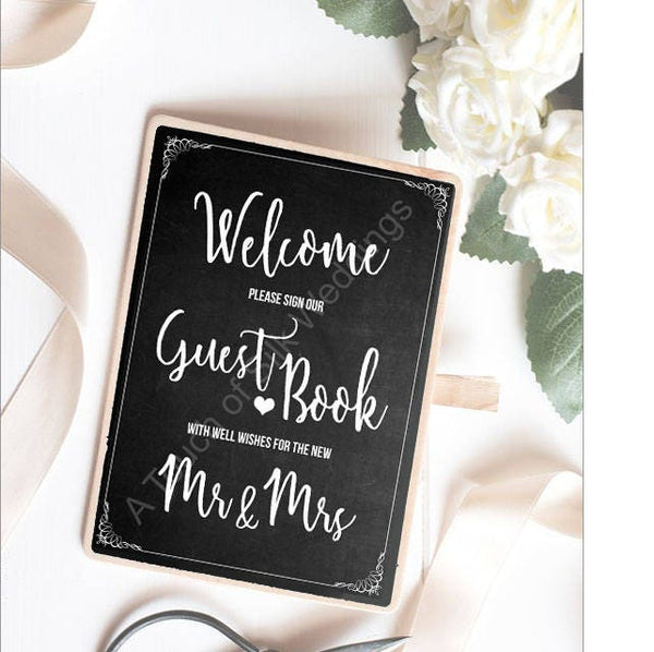 Hochzeits-Gästebuchschild mit Kreidetafel-Effekt