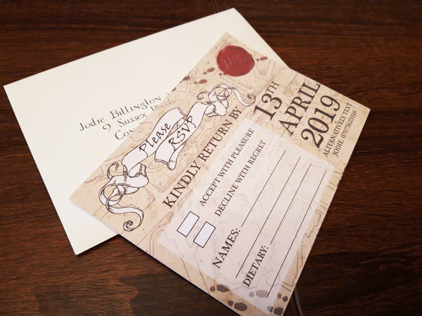 De RSVP bevat: - 1 x RSVP-kaart (A6-formaat) die wordt geleverd met een bedrukte envelop waarop uw RSVP-retouradres is afgedrukt.