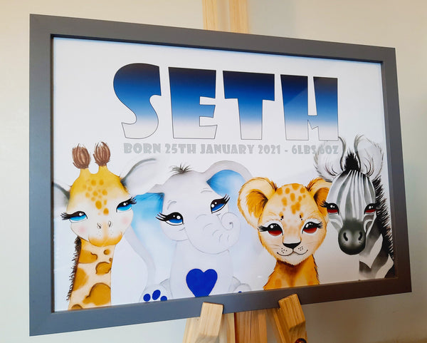 Gepersonaliseerde Baby Animal Print - Cartoon dierentuindieren, handgeschilderd in aquarel