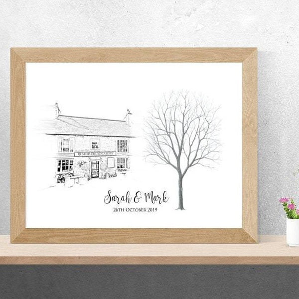 This print is perfect for couples looking for an alternative wedding guest book with a personal touch, incorporating your wedding venue.